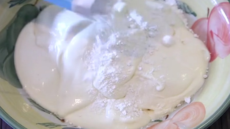 Добавете брашното и бакпулвера към разтопения сладолед.