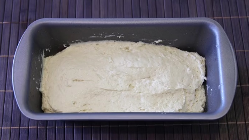 Загрейте фурната до 180 градуса.Намажете дъното на тавичка с растително масло и изсипете тестото в него.
