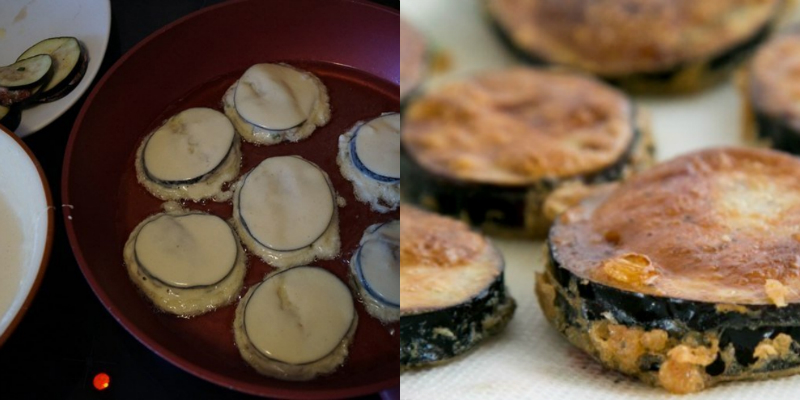 Поставете готовите патладжани върху хартиена кърпа, за да поеме излишното масло.