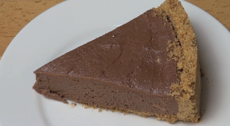 Десертът е готов: комбинацията от меко сирене и шоколад придава прекрасен вкус. Горната част на тортата може да бъде украсена с ядки.