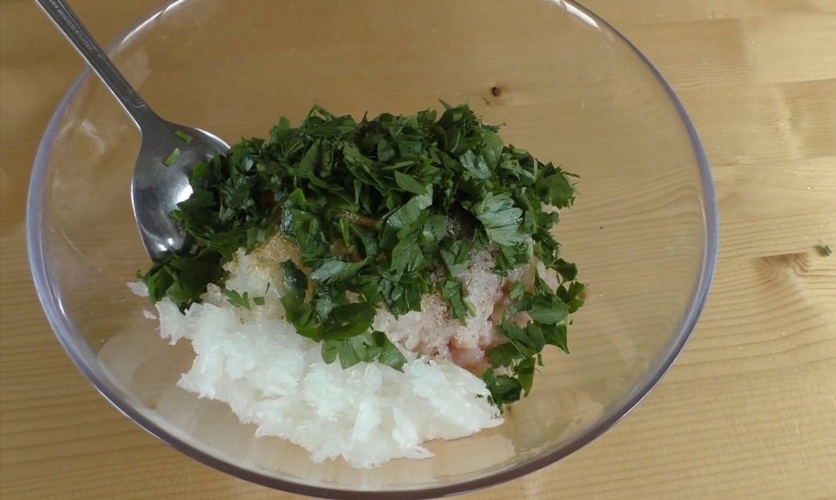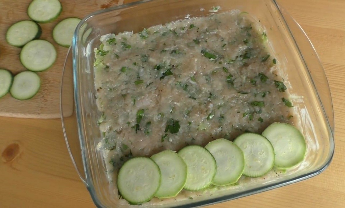 Разтрийте една тиквичка на едро ренде , посолете и оставете в съд за няколко минути. Когато се появи сокът, изстискайте добре масата от тиквички. След това настържете лука на едро ренде и смесете с каймата. Добавете там сол, черен пипер, нарязан чесън и магданоз.(646).jpg)