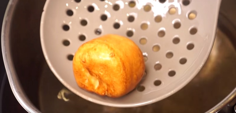 Бананите се пържат много бързо, така че най-добре е всяка хапка да се запържи отделно. Щом тестото придобие приятен златист цвят, веднага извадете десерта от тенджерата.
