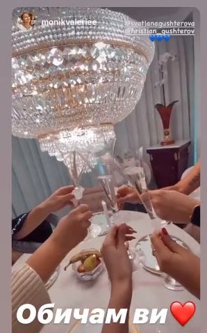 Иначе съгласно изискванията на епидемията, Светлана е поканила едва четири жени на погачата на бебето, които вдигат наздравица на щастие на семейството с шампанско.
